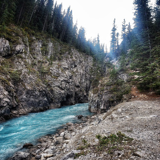 Instead of rushing home, we started pulling over at every little nook and trail that caught our eye and Alberta rewarded our spontaneity. Turquoise rivers glimmered under the sun like spilled gems, and hidden canyons opened up just off the road, whispering “come see.”
